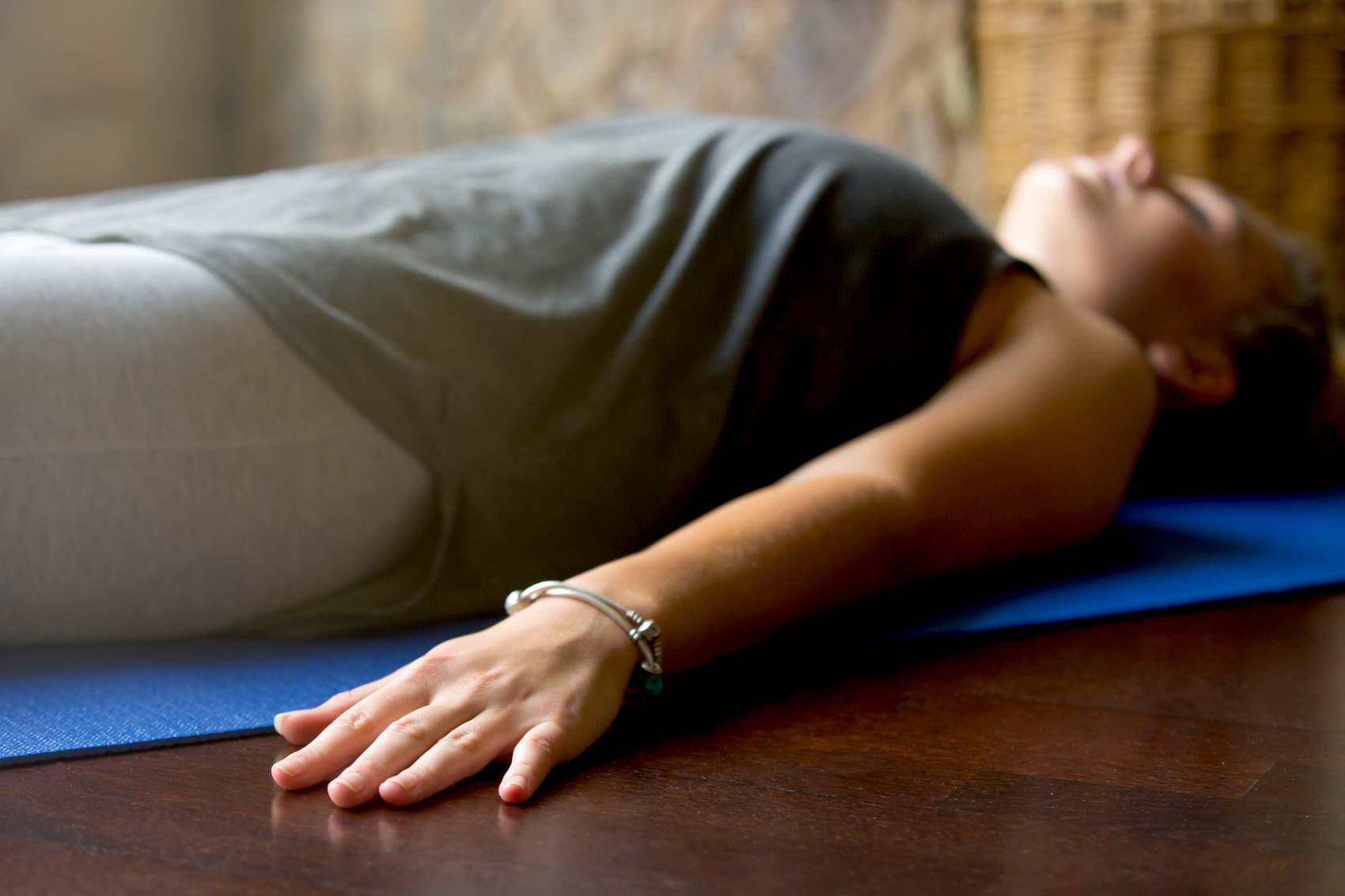 - Legen Sie sich auf den Boden, die Fußsohlen dabei aneinanderdrücken. Dann die Knie seitlich weit auseinanderfallen lassen